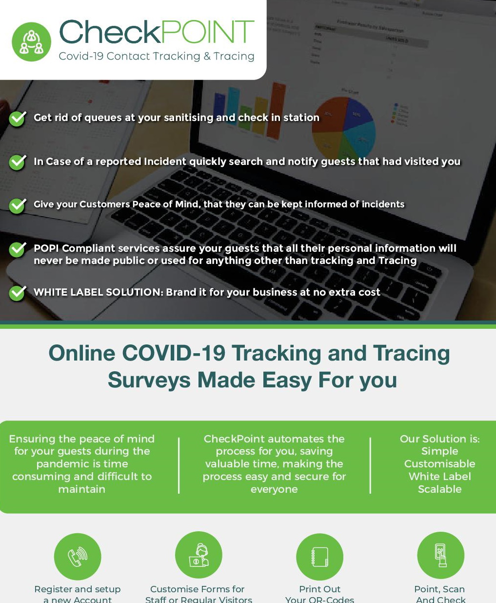 Need a modern secure Contact or Entry tracking and tracing solution? Instead of using a paper based entry system. Quickly have your regular clients and staff log in and out of your premises with our online solution branded to your company. Whatsapp integration and Custom flows available for any type of environment.